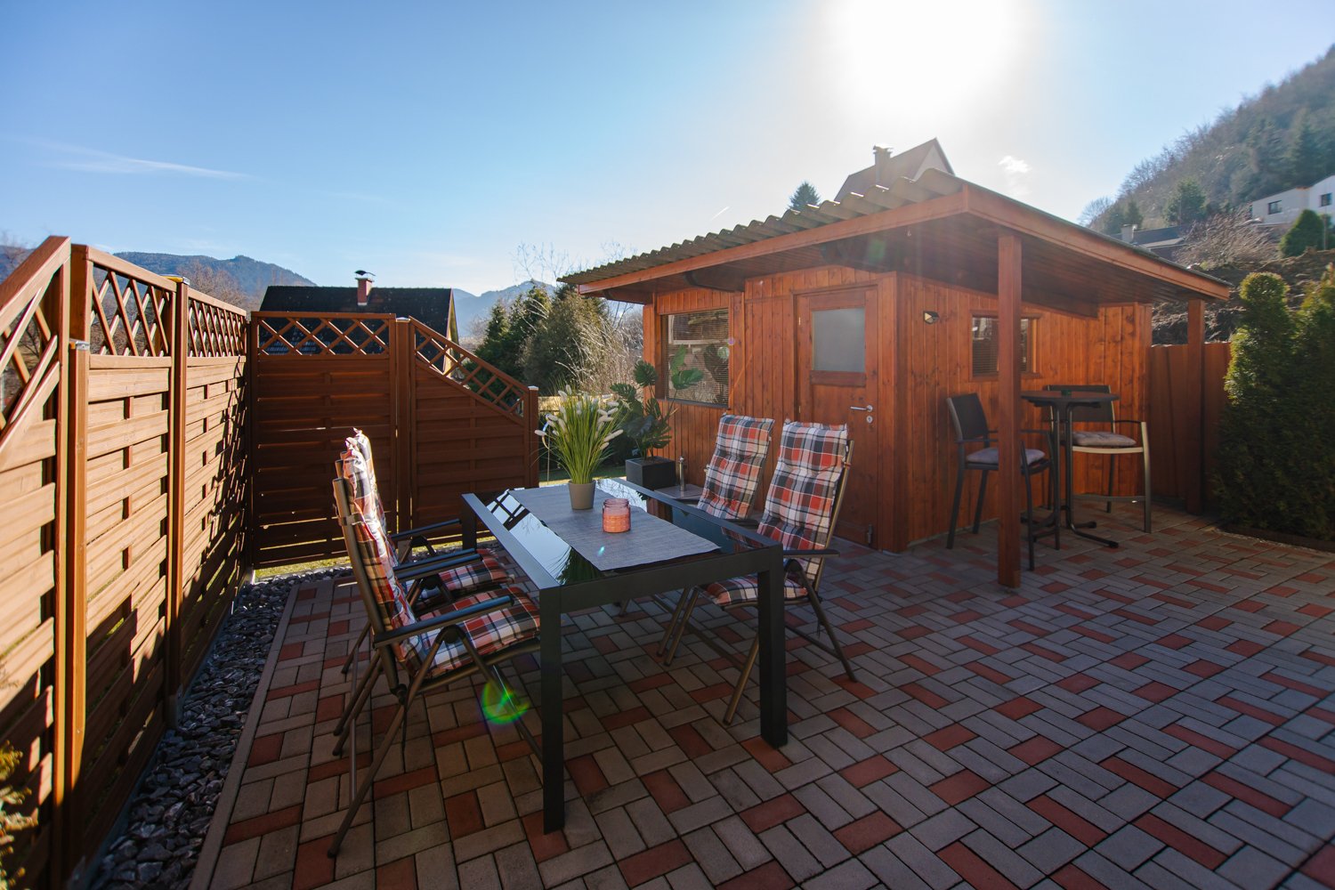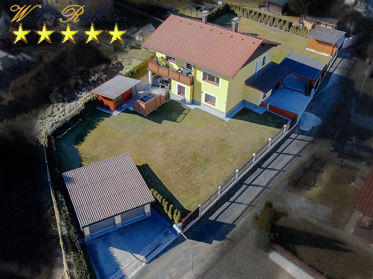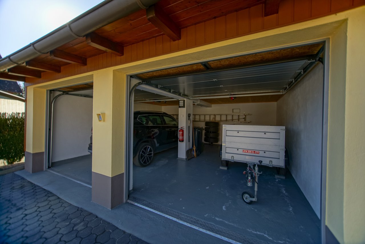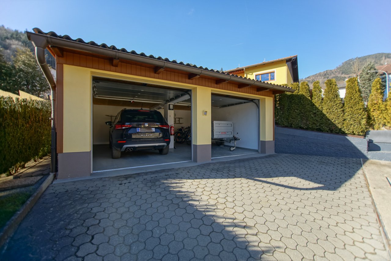 Eine großzügige Doppelgarage sowie ein überdachter KFZ Abstellplatz direkt vor der Haustüre, eine Gartenhütte (Strom, Heizung) runden dieses attraktive Angebot ab.