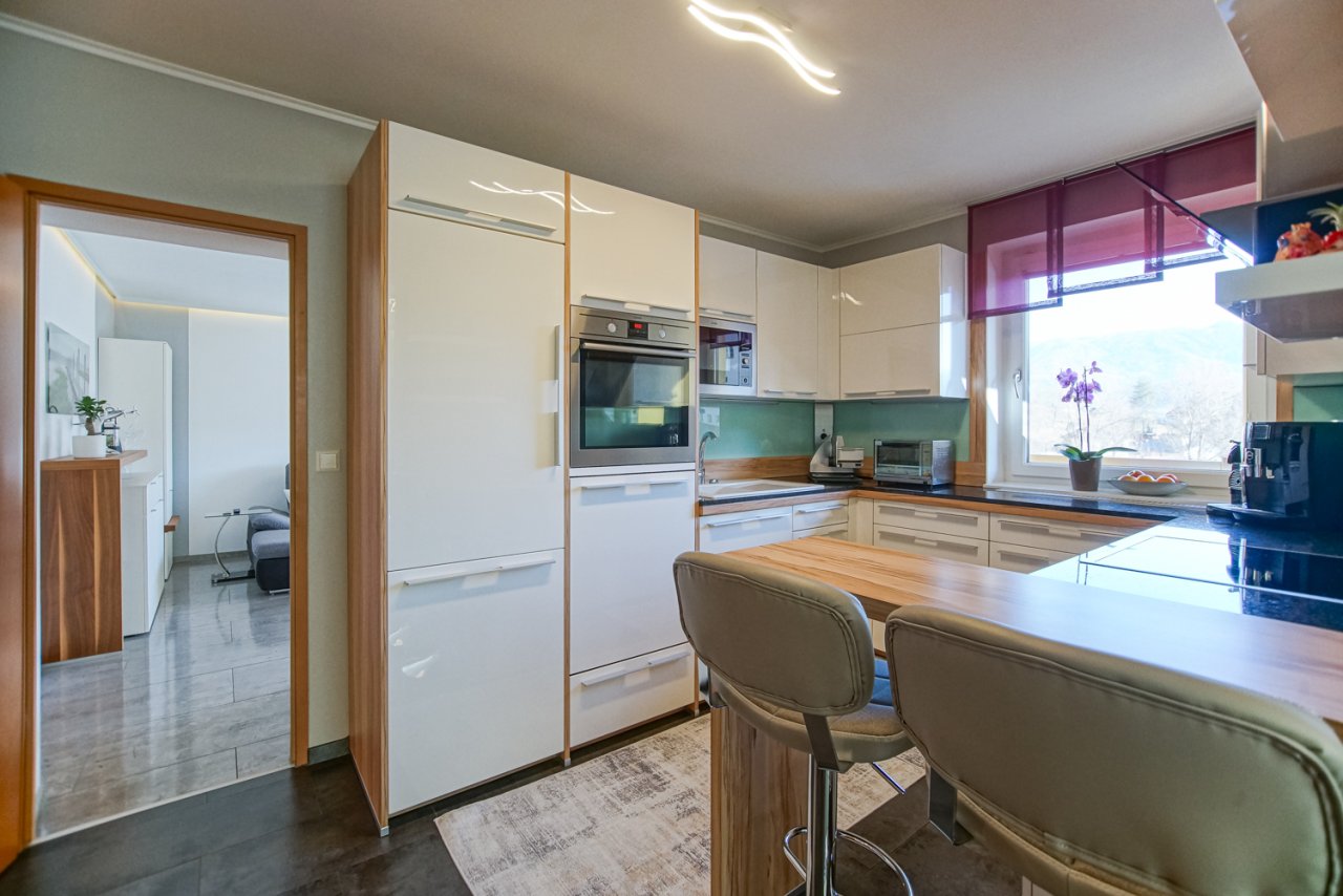 Das 1232 m² große Grundstück lädt dazu ein, den Sommer im eigenen Garten zu genießen, während der Balkon einen herrlichen Blick auf die Umgebung bietet. Die zwei Etagen des Hauses schaffen ein angenehmes Raumgefühl und bieten Flexibilität für individuelle Wohnkonzepte. Besonders hervorzuheben ist die komfortable Einbauküche, die nicht nur funktional ist, sondern auch zum gemeinsamen Kochen und Verweilen einlädt.
